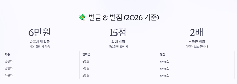 💸 우회전 벌금 및 벌점 (2026 기준)
