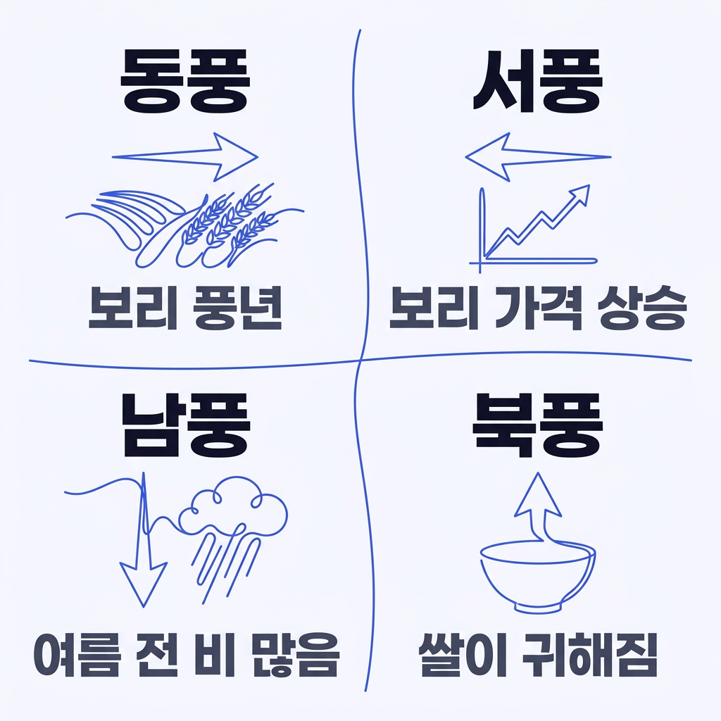 - 동풍 → 보리 풍년